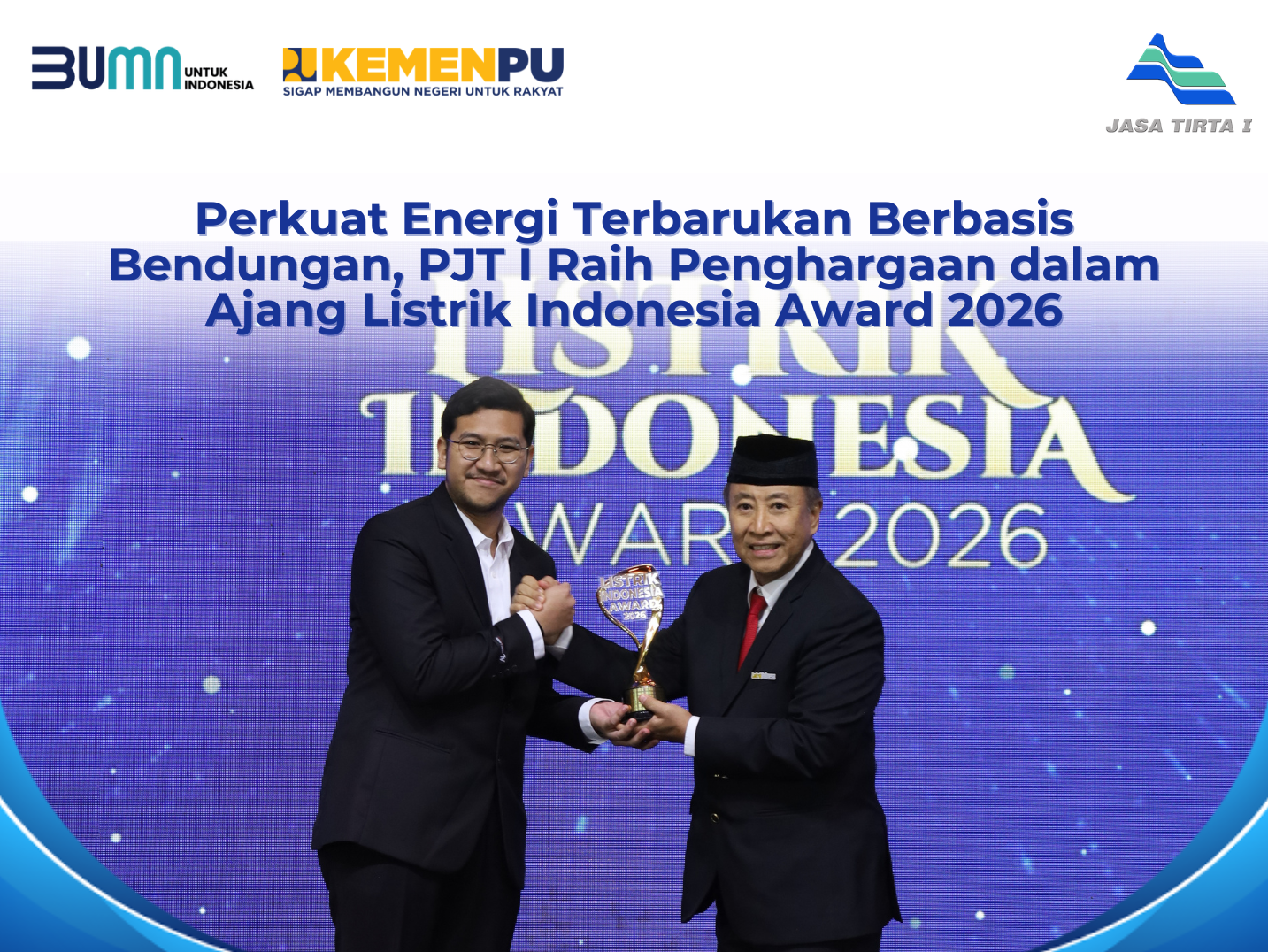 Jakarta, 22 April 2026 — Perum Jasa Tirta I kembali menorehkan prestasi dengan meraih penghargaan dalam ajang Listrik Indonesia Award 2026 yang diselenggarakan oleh Majalah Listrik Indonesia di Hotel Mulia Senayan, Jakarta, Rabu (22/4).